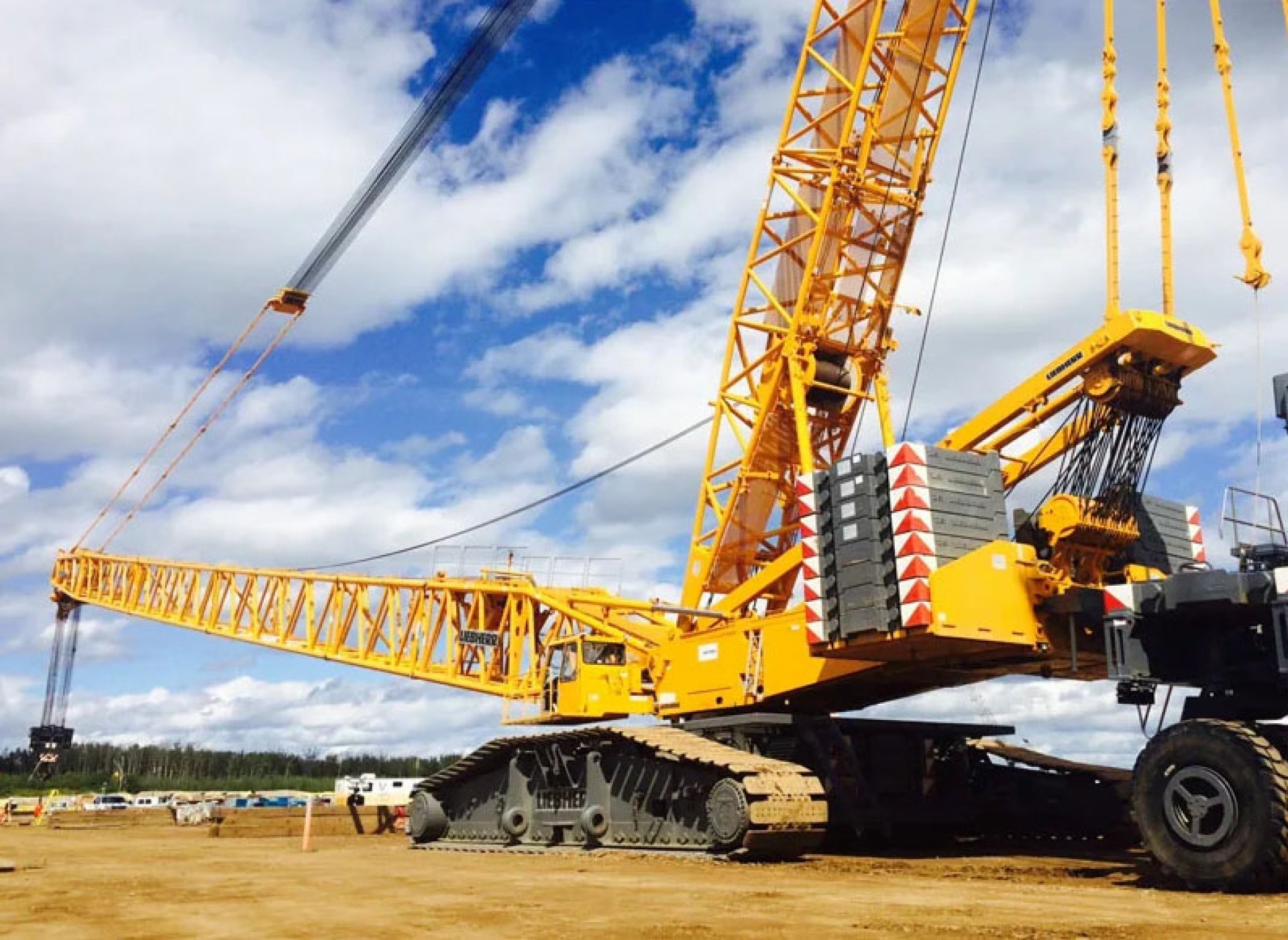 งานก่อสร้างโครงสร้างขนาดใหญ่ ก่อสร้างโรงงานนิคมอุตสาหกรรม เช่น งานแท่งปูนขนาดใหญ่ งานก่อสร้างสะพานทางด่วน งานก่อสร้างอุตสาหกรรม เครนตีนตะขาบชนิดสามารถยกน้ำหนักได้มาก และมีความเสถียรการทรงตัวที่สูง